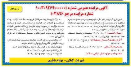 آگهی مزایده عمومی شهرداری کیلان در خصوص فروش آهن آلات و ضایعات