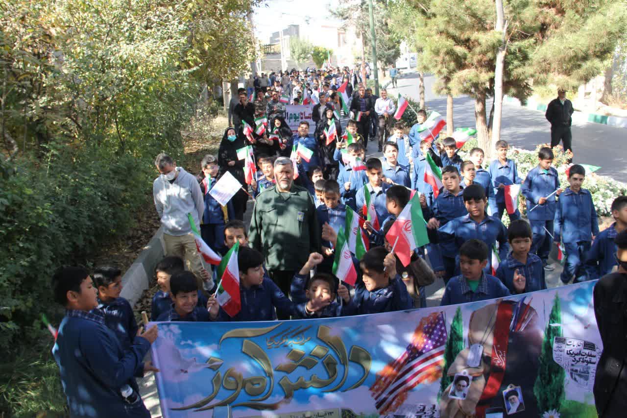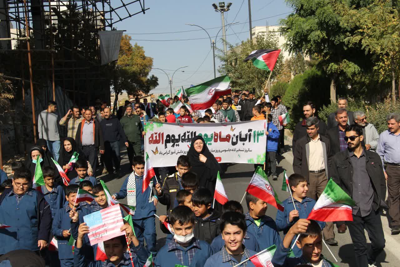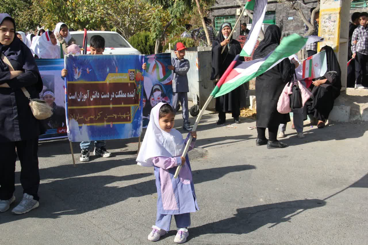 صبح امروز، جمع کثیری از دانش‌آموزان، فرهنگیان، خانواده‌های معظم شهدا، مسئولان محلی و اقشار مختلف مردم با حضور پرشور خود در راهپیمایی باشکوه این روز تاریخی، عهدی دوباره با آرمان‌های امام خمینی (ره) و رهبر معظم انقلاب بستند.